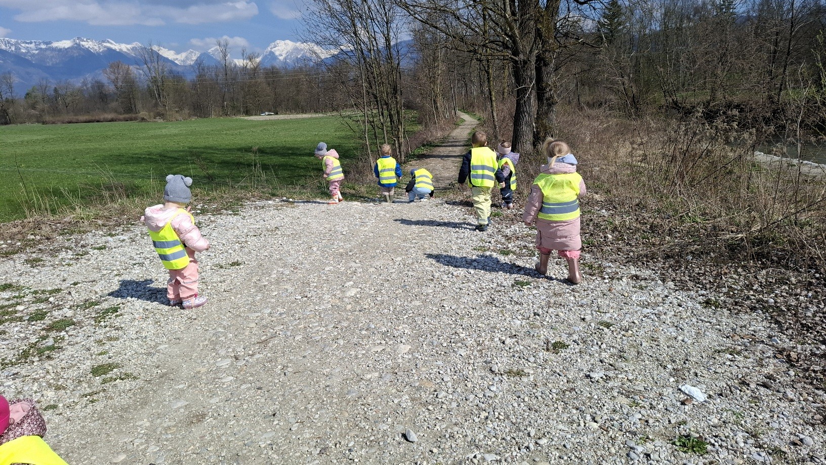 Zvezdice in enote Sonček smo res majhne, ampak delamo velike korake. Ti so nas danes ponesli do nasipa ob Kamniški Bistrici, kjer smo morali najprej priplezati na vrh hriba, tam smo si pripravili malico v naravi, nato pa smo pol kamenja z nasipa pometali ob strugo reke. Za konec nas je čakal še za nekatere strašlijiv, za druge zabaven spust s hriba. Komaj čakamo, kam vse nas bodo naše male nogice še ponesle...