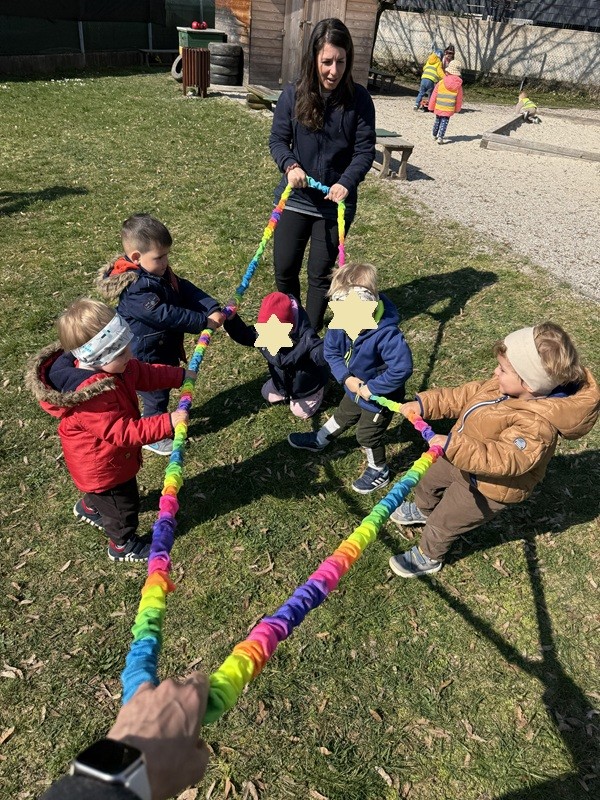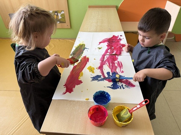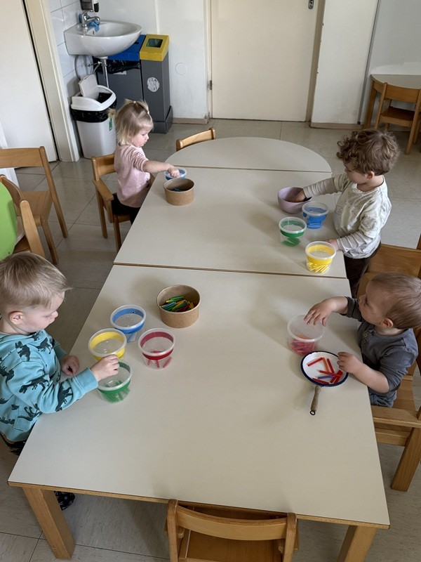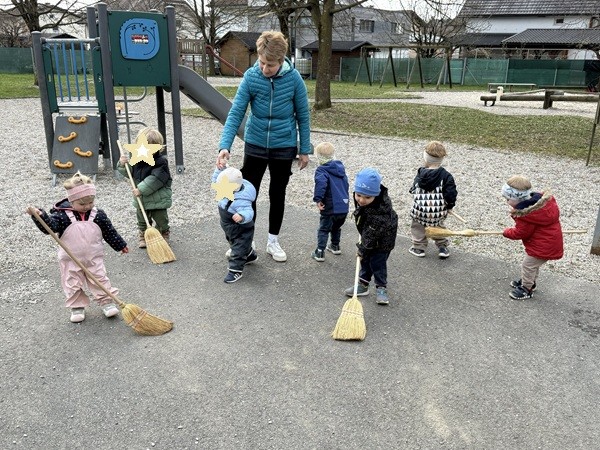 Mesec marec je bil pri nas nadvse pisan. Z otroki smo raziskovali barve na različne, igrive načine. Likovno smo ustvarjali cvetoči travnik, razvrščali barvne predmete in slike, prispevali k čistejšemu okolju (otroci so sodelovali v čistilni akciji okoli vrtca in na igrišču). Vzgojiteljice smo za otroke pripravile kratko predstavo Trije metulji. Pomlad pa nas je obiskala tudi v igralnici. Opazovali smo prve pomladne cvetlice in se o njih pogovarjali. Poseben trenutek meseca je bilo druženje z očki, kateri so skupaj z otroci ustvarjali presenečenje za njihove mamice.